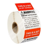 2" x 3” | Rectangle | THIS IS A SET SUFFOCATION WARNING | BPA Free | Permanent-Adhesive | 500 Labels per Roll