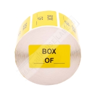 6 rolls (1,000 labels per roll) Pre-Printed Box __ of __, Yellow, 2" x 1.25"