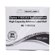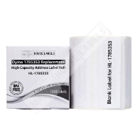 These high-capacity, DYMO®-compatible 1785353 address labels (HL-1785353) are 100% compatible with the DYMO® LabelWriter® 4XL printer.  They can be used for address labels, product identification, file folders, barcoding and much more.  Unlike Dymo-compatible 30252 address labels (HL-30252), that come on rolls running lengthwise, HL-1785353 has the labels running the other direction.  Therefore, the 4XL printer only prints one inch per label, which allows it to print three times more address labels per roll and up to 129 address labels per minute.