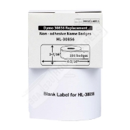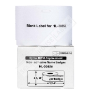 DYMO®-compatible 30856 non-adhesive name badges (HL-30856) are 100% compatible with any DYMO® LabelWriter® printer. These name badges are great for event registration and attach directly to clothing using the Dymo name badge clips (clips not included).